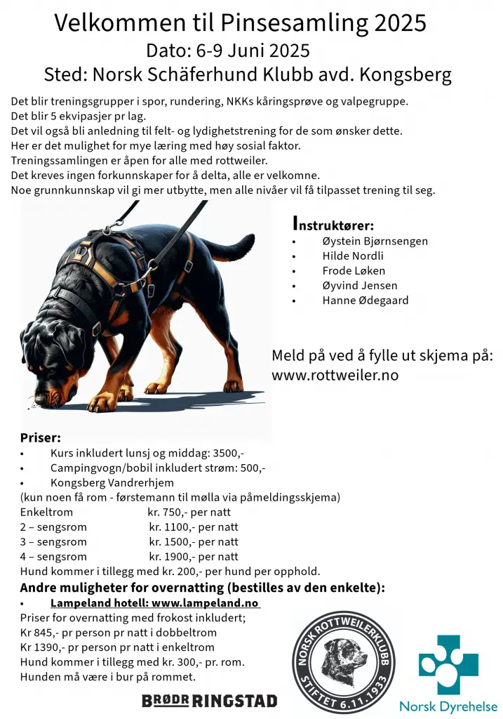 Av WebmasterPublisert den 26. mars 2025Publisert i Bruks, Bruksprøver og arrangementer, INFO - TERMINLISTER - RESULTATER, Kurs, Nyheter Navn *Mobilnummer *Email *Hundens Navn *Kallenavn/Brukes i hverdagenOvernatting *Campingvogn/bobil inkludert strømEnkeltrom2 mannsrom3 mannsrom4 mannsromOrdner overnatting selvHundens alder *Hvilket "lag" ønsker du å være med på? *SporRunderingNKK kåringsprøveValpegruppeHvilket nivå ligger dere på idag? *Aldri gjort det førNybegynnerViderekommenViderekommen +EkspertEr det annen informasjon du synes vi bør vite? F.eks hvem vil du dele rom med/hund på rommet Bekreft din påmelding Jeg er inneforstått med at påmeldingen er økonomisk bindendeNameSend inn Pinsesamling 2025 Innleggsnavigasjon GF 2025Protokoll GF 2025